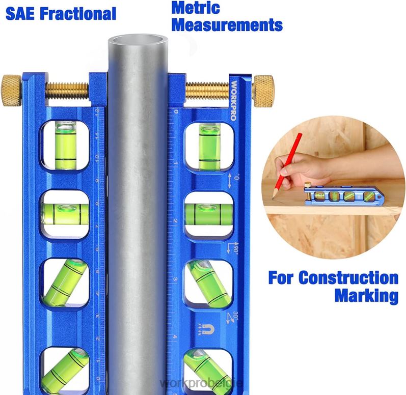 libellen met hoge nauwkeurigheid: 4 goed zichtbare libellen voor hoeken van 0/90/30 /45, maximale nauwkeurigheid van 0,5 mm/m, gemaakt van transparant acrylglas met gladde binnencontouren en helder fluorescerende vloeistof aan de binnenkant.